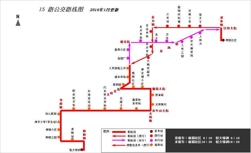 根據(jù)公交線路覆蓋區(qū)域要求,結(jié)合承包車主提出申請,為方便青花大街與盼盼路交匯處以南附近小區(qū)居民乘坐公交出行,經(jīng)公司研究,從2016年1月26日起,對公交15路線路走向進行局部調(diào)整,具體情況如下: