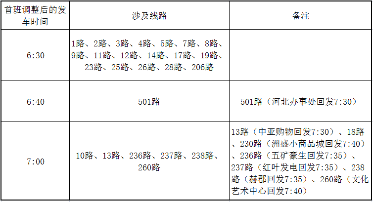 (一)2月15日、16日(三十、初一)首班延后發(fā)車、末班提前收車,具體明細(xì)見(jiàn)下表: